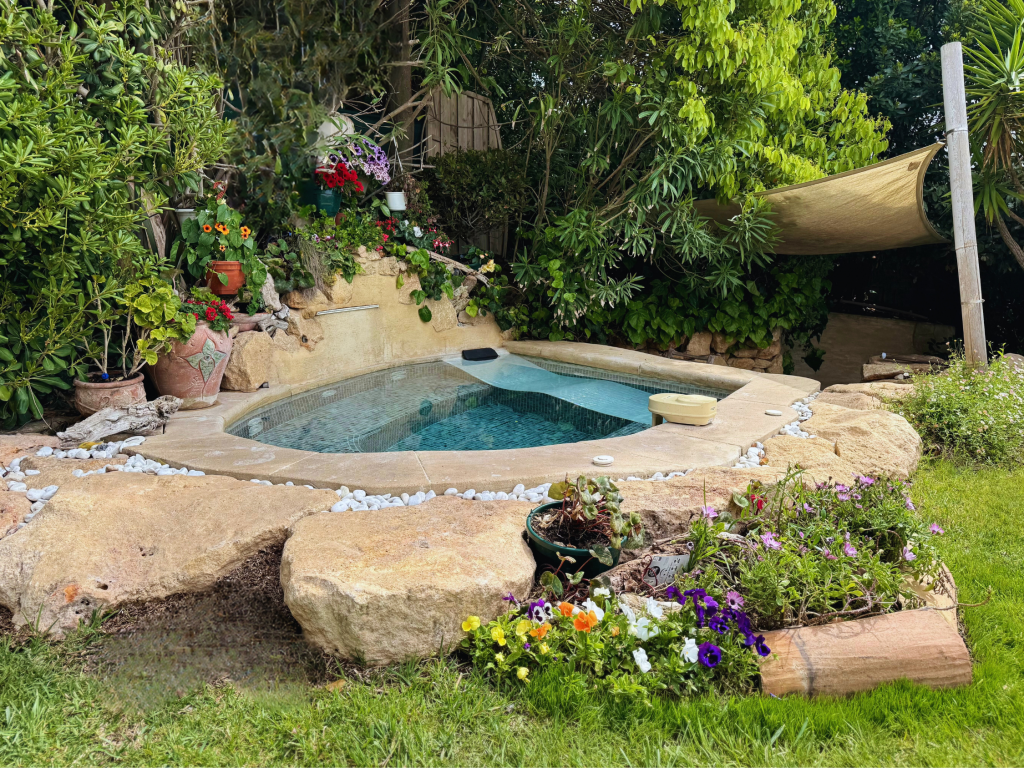 Le terrain, finement dessiné, accueille un spa en pleine nature (non chauffé hors saison), entouré de végétation méditerranéenne. À l’étage, un grand solarium panoramique vous livre la mer à 180°, jusqu’à se confondre avec le ciel.